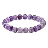 Natural amethyst gemstone bracelet with 8mm beads on stretchy cord.