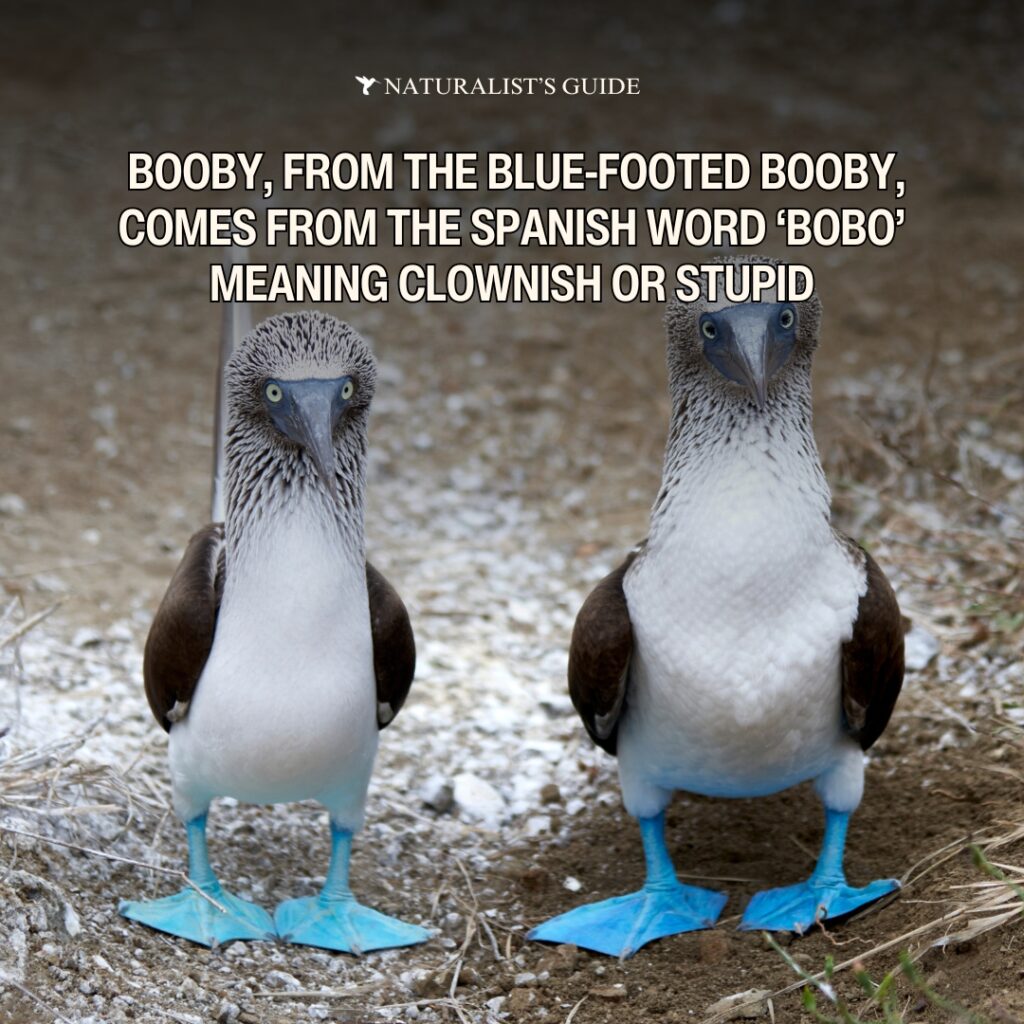 The booby name, for the blue-footed booby, comes from the Spanish word ‘bobo’ meaning clownish or stupid